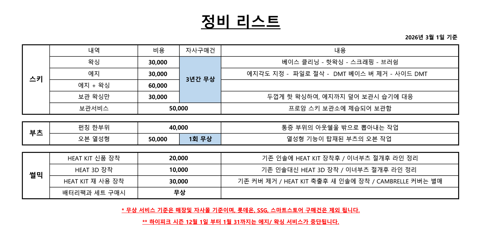 제목 2026 정비 공임 안내